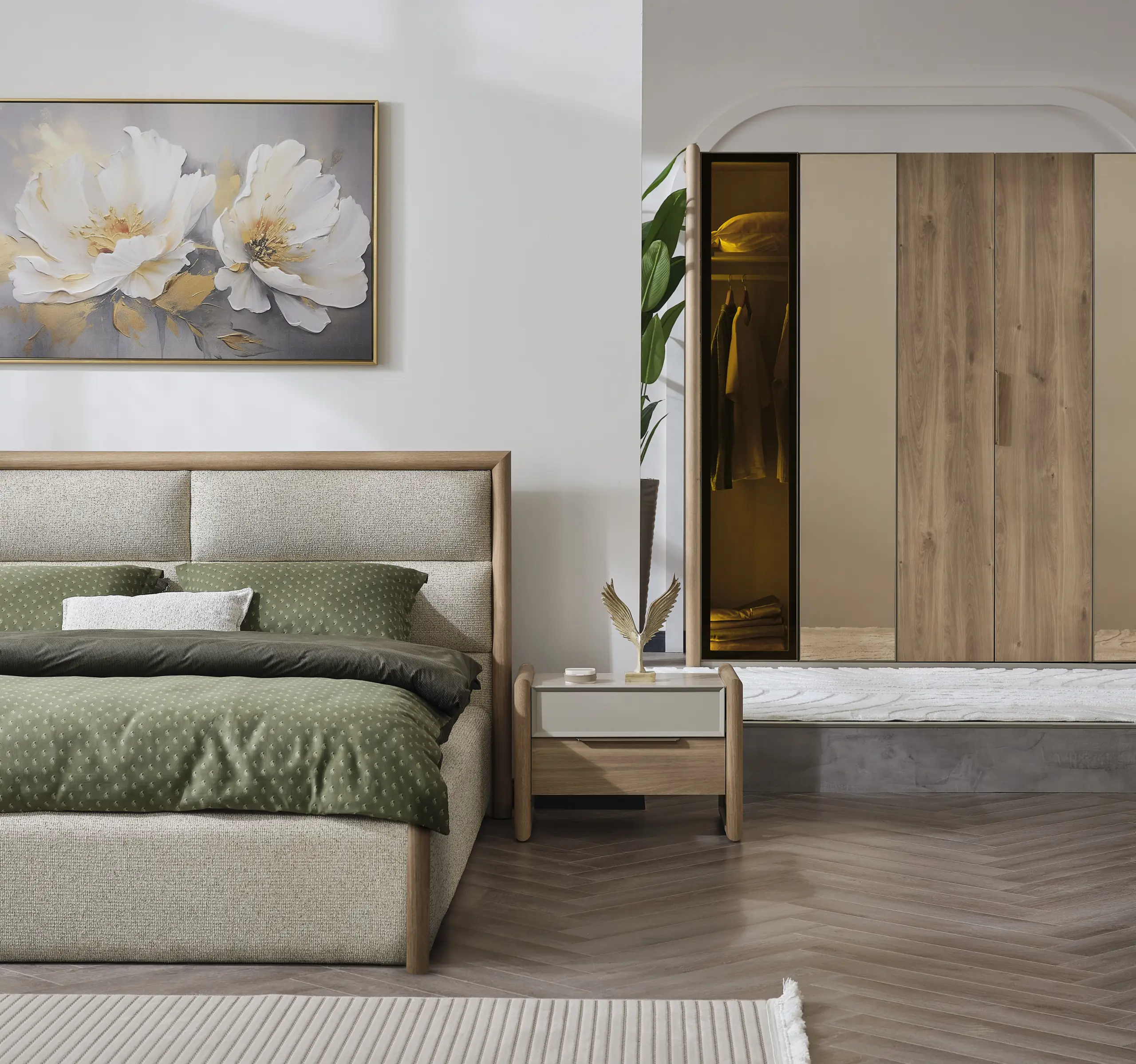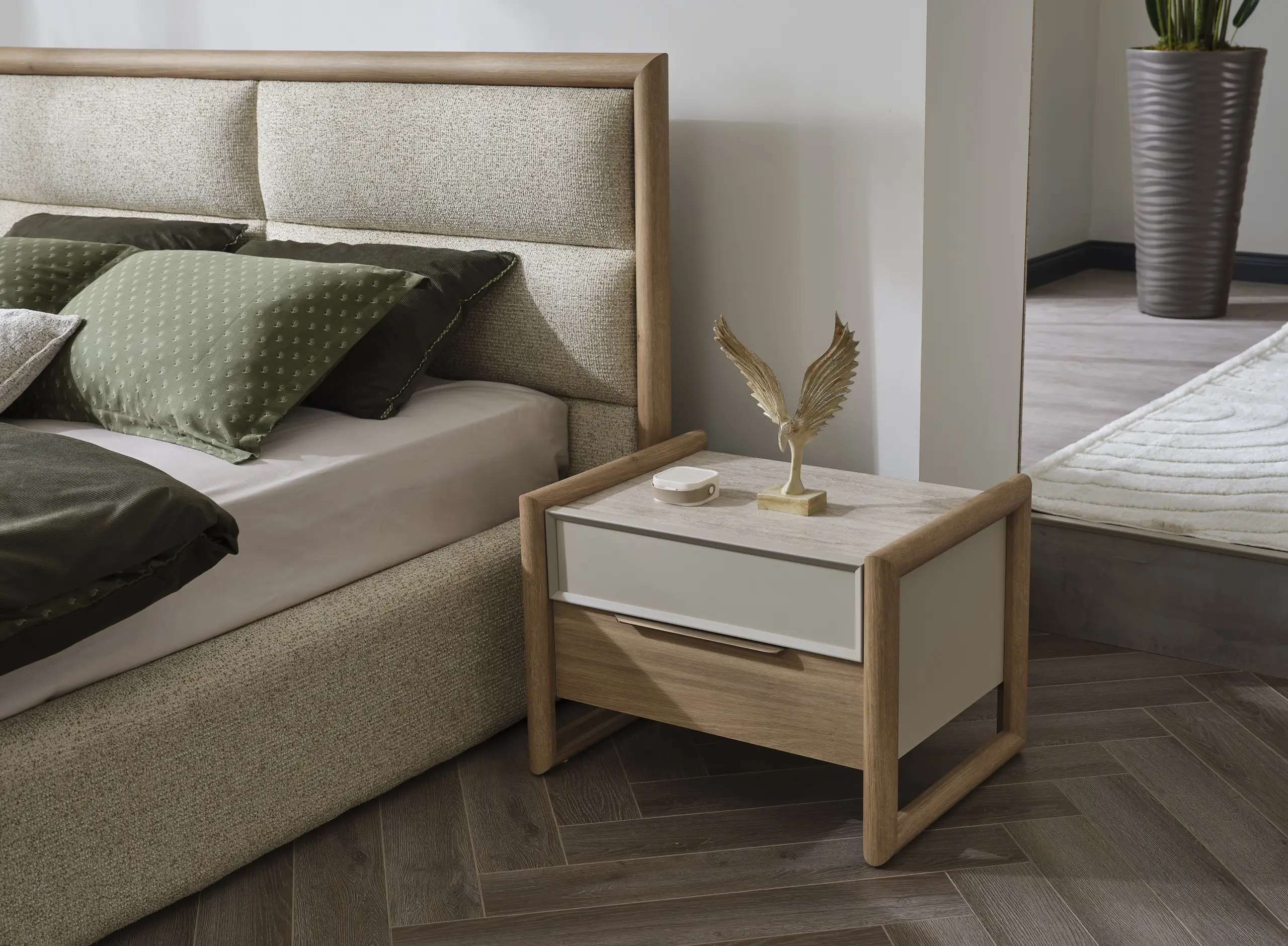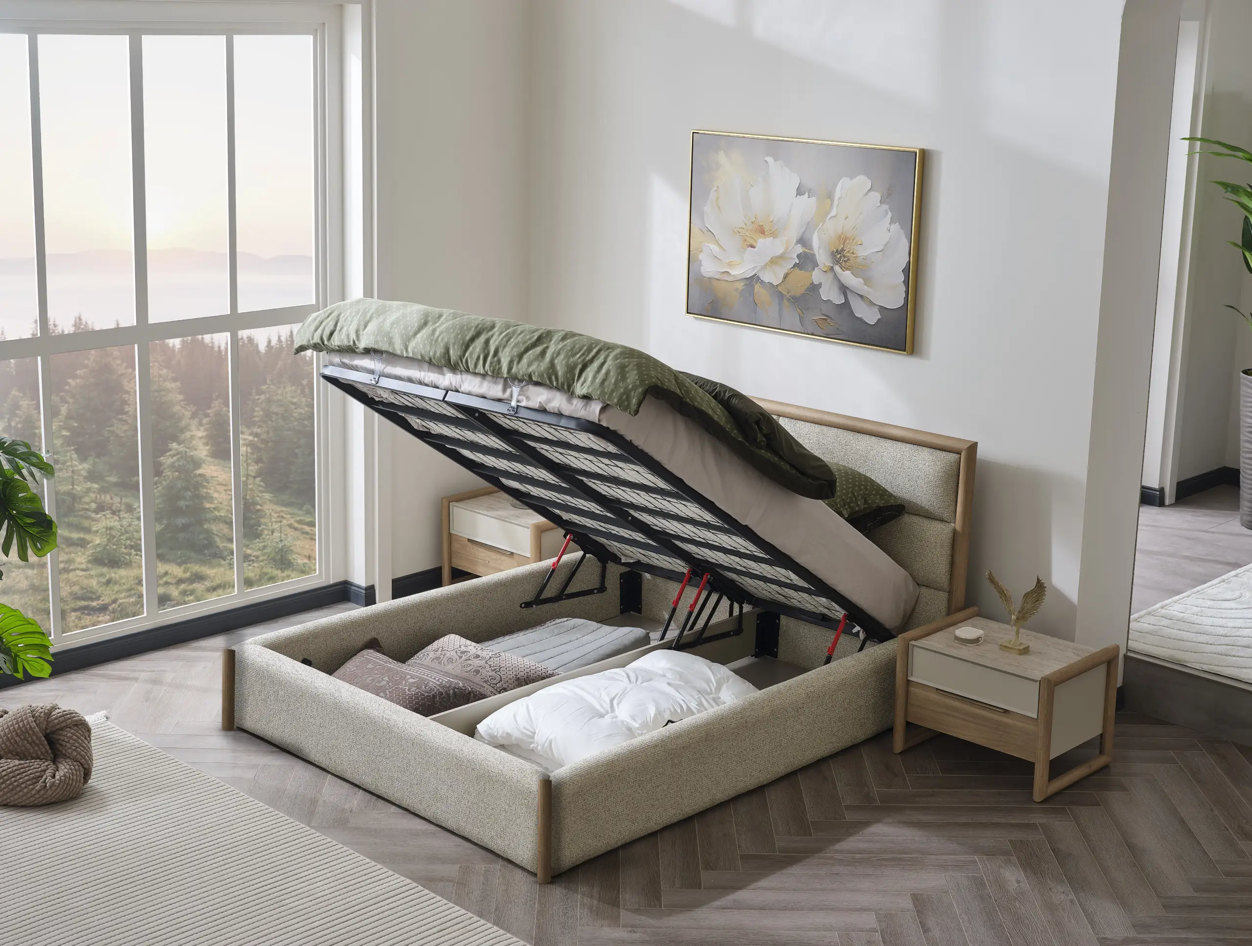 The Amsterdam Bedroom Set gives your bedroom a spacious and tidy appearance with its simple and modern design. While offering long-term use thanks to its aesthetic details and high-quality material structure, it creates a comfortable living space with functional storage areas. It is an ideal choice for those who are looking for a relaxing atmosphere.
