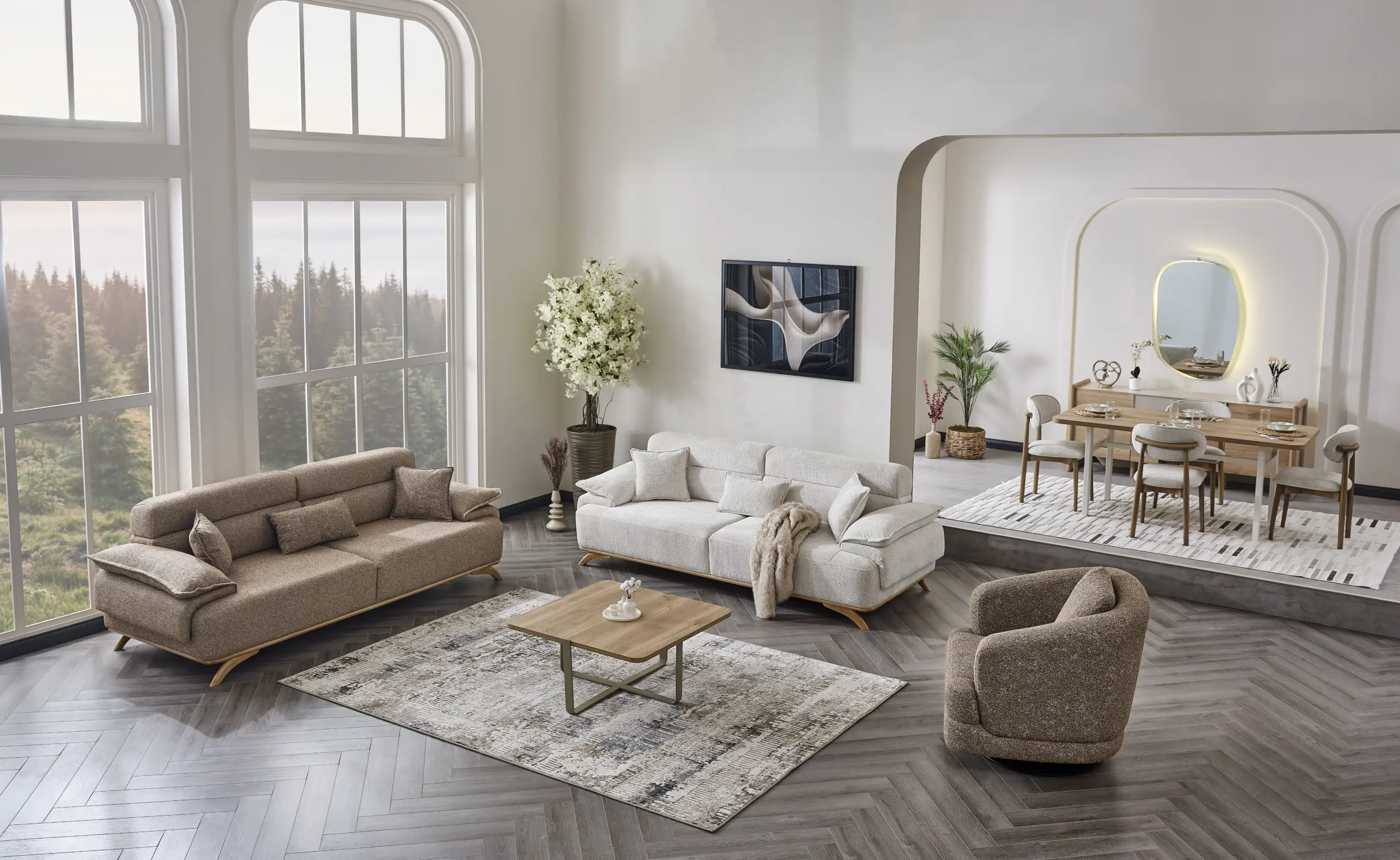 The Amsterdam Living Room Set adds a modern atmosphere to your living spaces with its contemporary design and balanced lines. Thanks to the comfortable session structure and the use of high-quality materials, it offers comfort both in daily use and when hosting guests.he Amsterdam Living Room Set adds a modern atmosphere to your living spaces with its contemporary design and balanced lines. Thank.