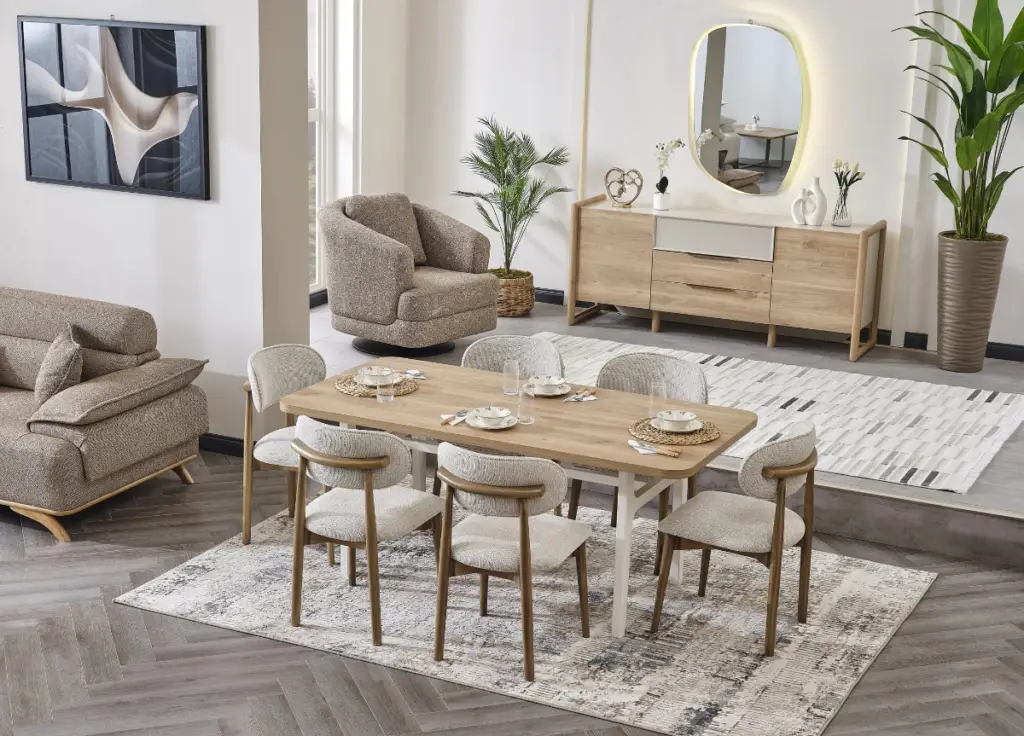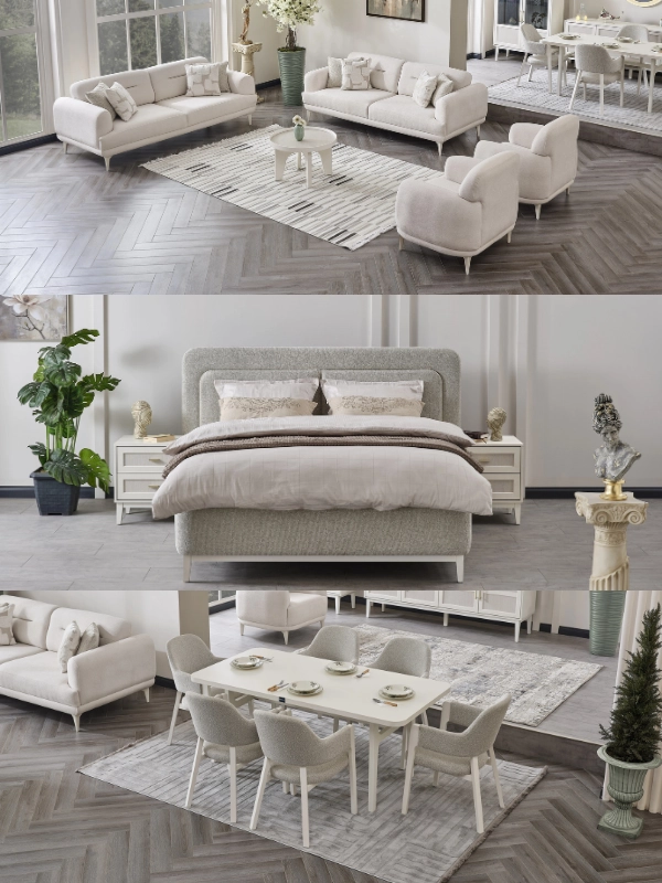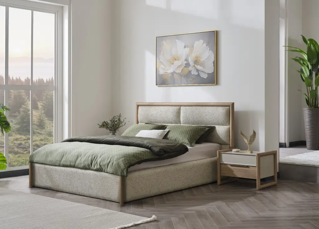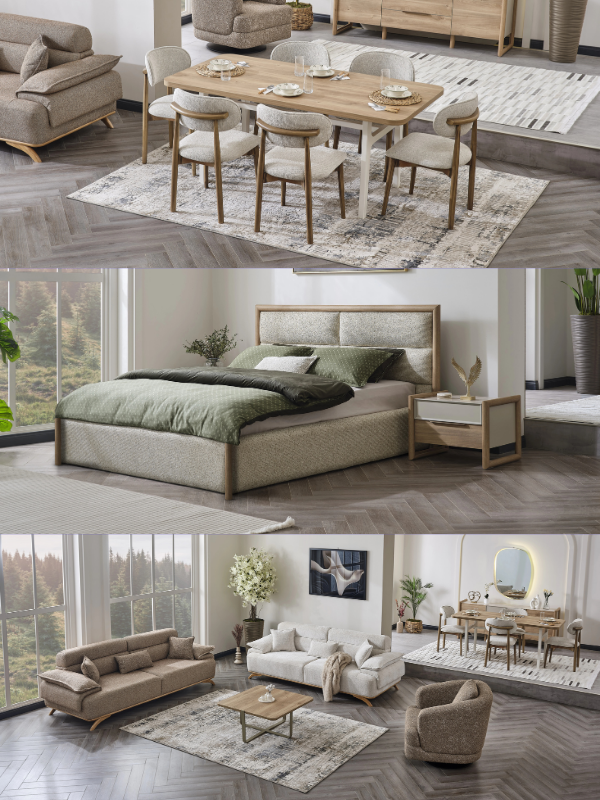 Blending the warmth of natural wood with soft-textured fabric details and minimalist lines, it creates a modern, serene, and sophisticated living space in every corner of your home.