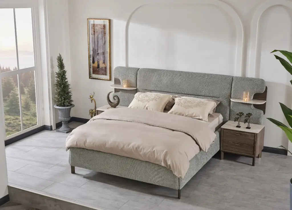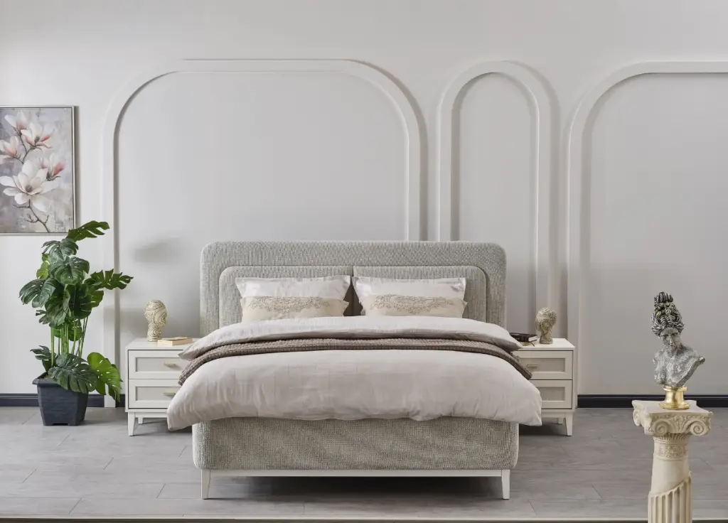 With its soft lines and textured headboard design, it adds a noble touch and a serene atmosphere to your moments of rest.