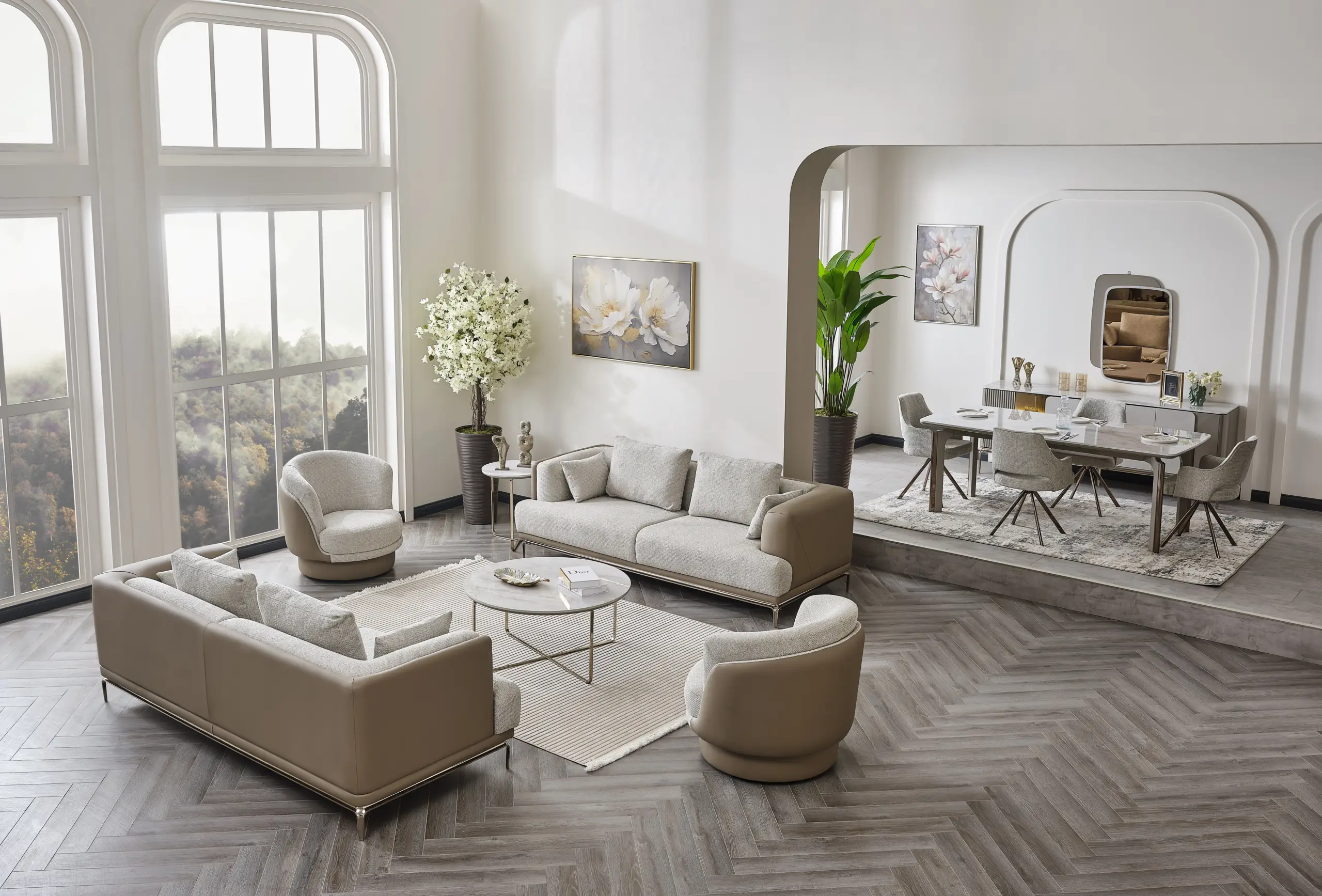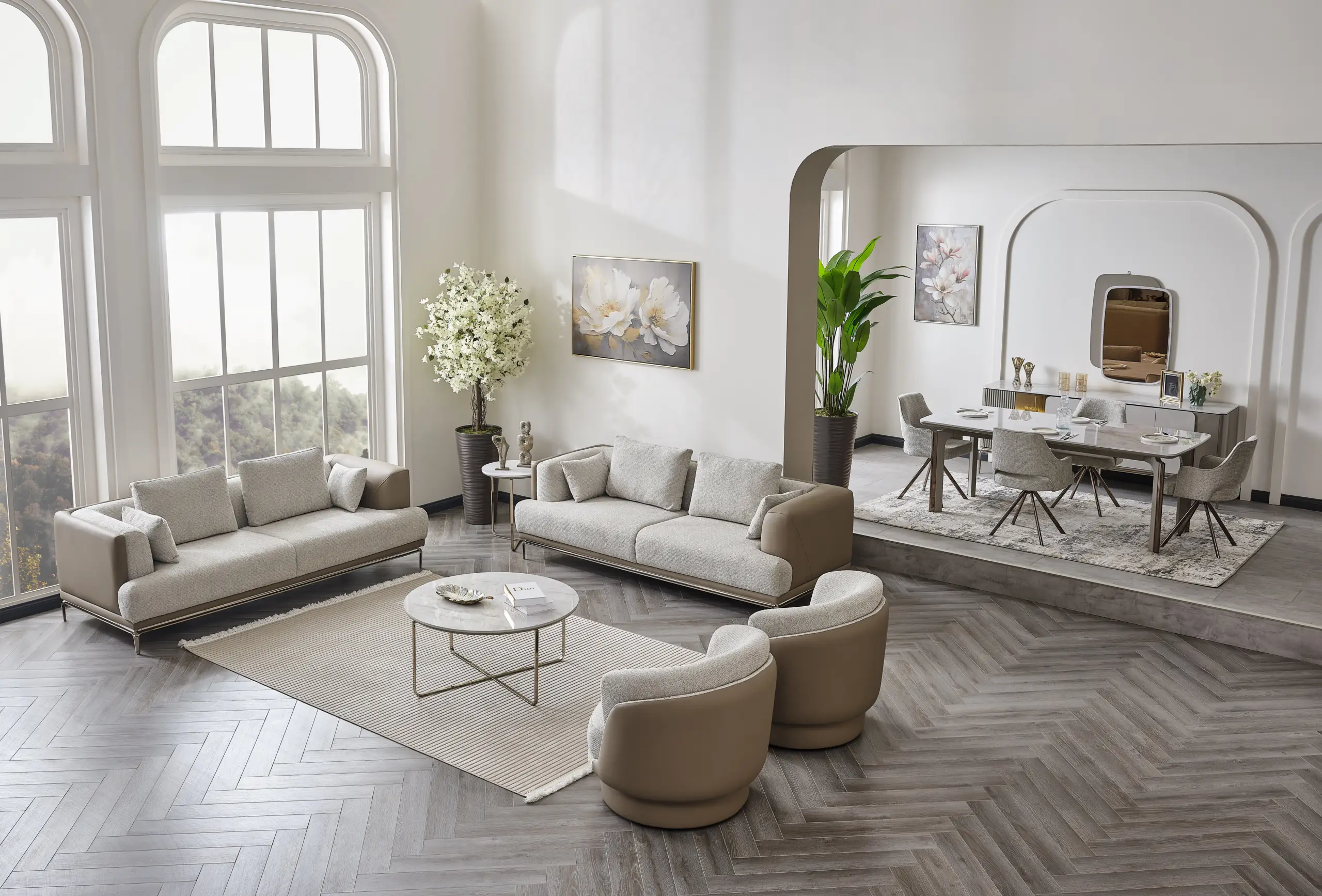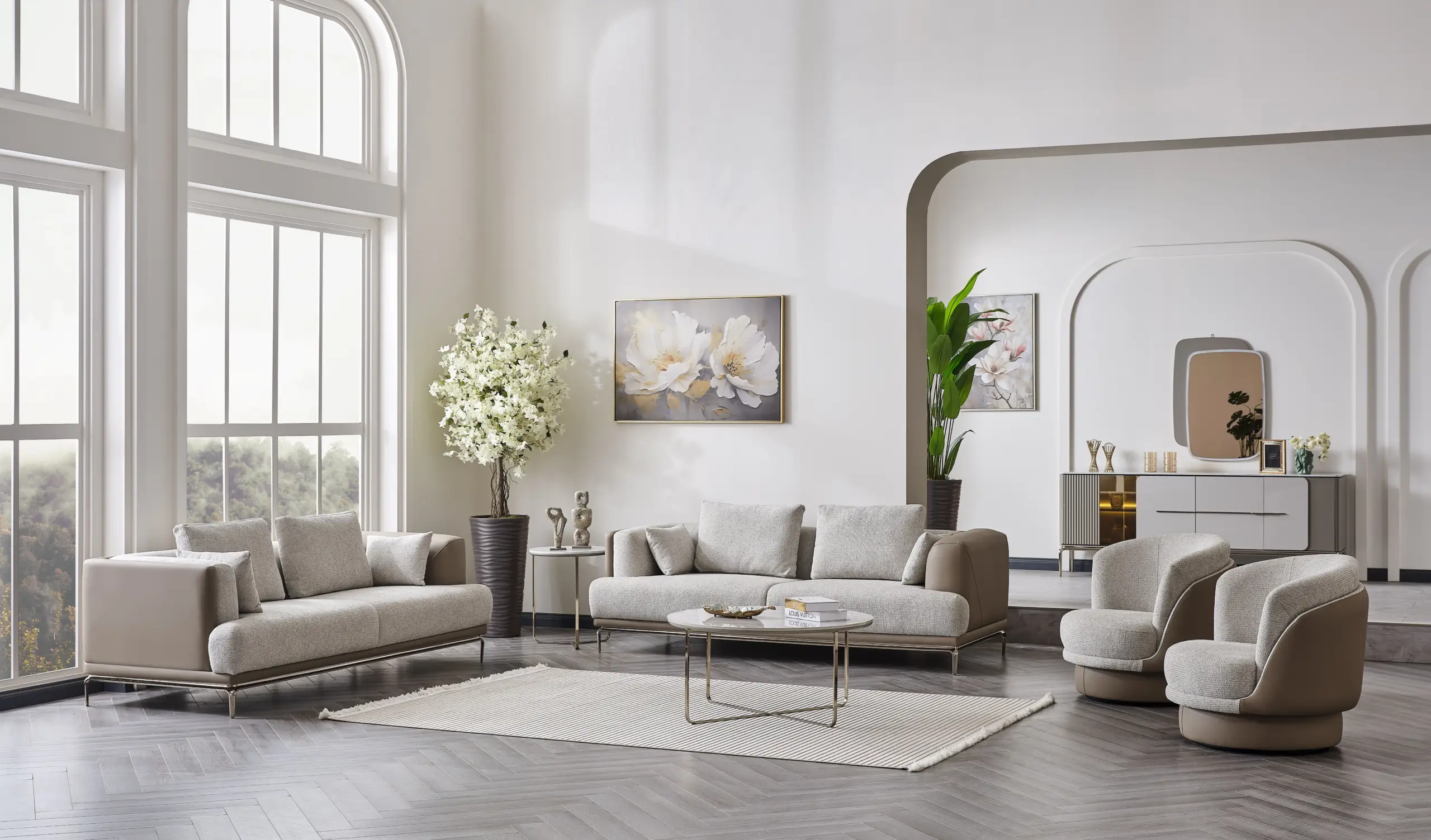 The Likya Living Room Set brings a fresh atmosphere to your living spaces with its simple design and modern details. Thanks to its comfortable seating structure and aesthetic lines, it offers comfort for both daily use and hosting guests. With its balanced design and high-quality material structure, it creates a warm, intimate, and stylish environment in your living room.