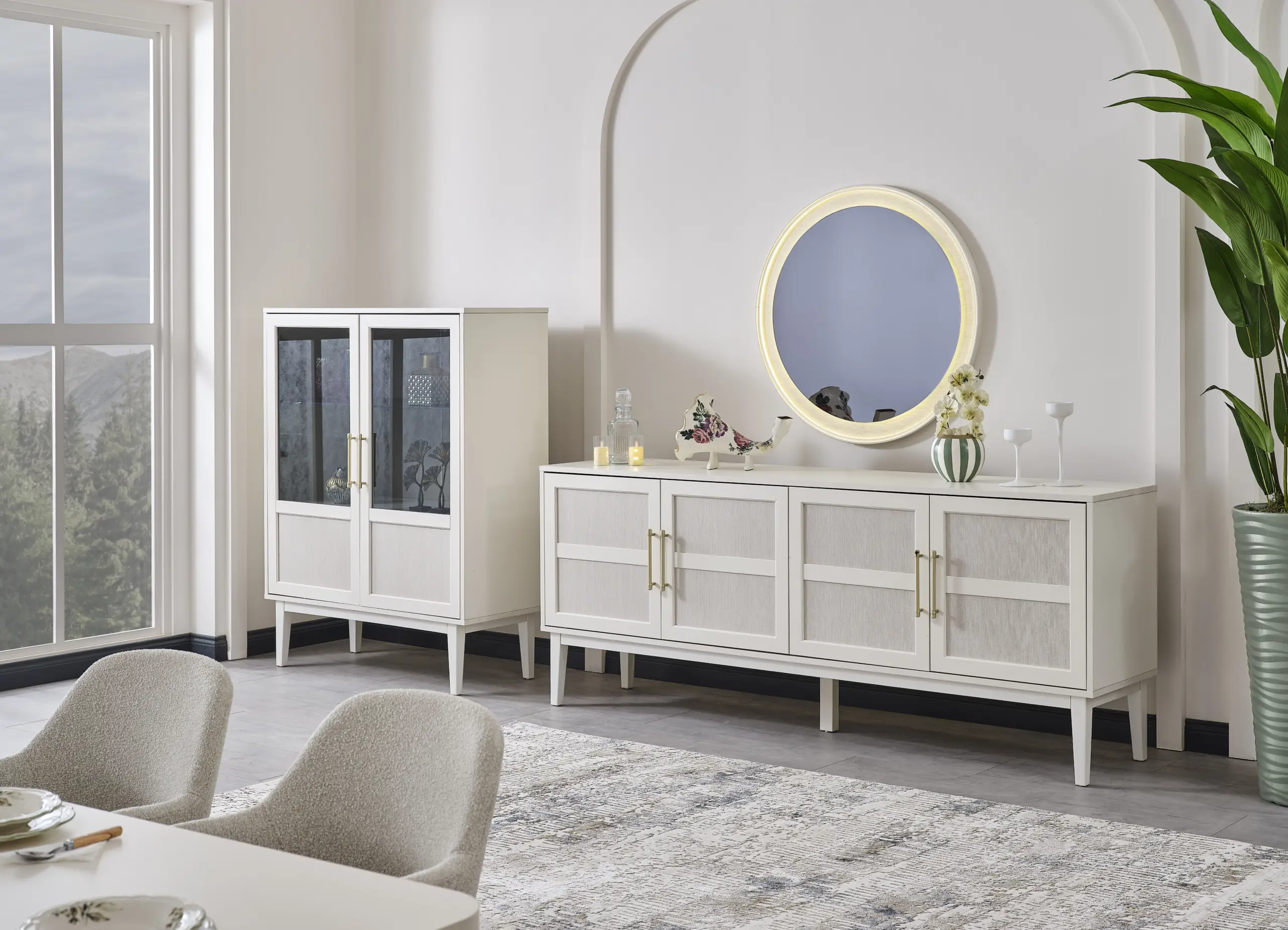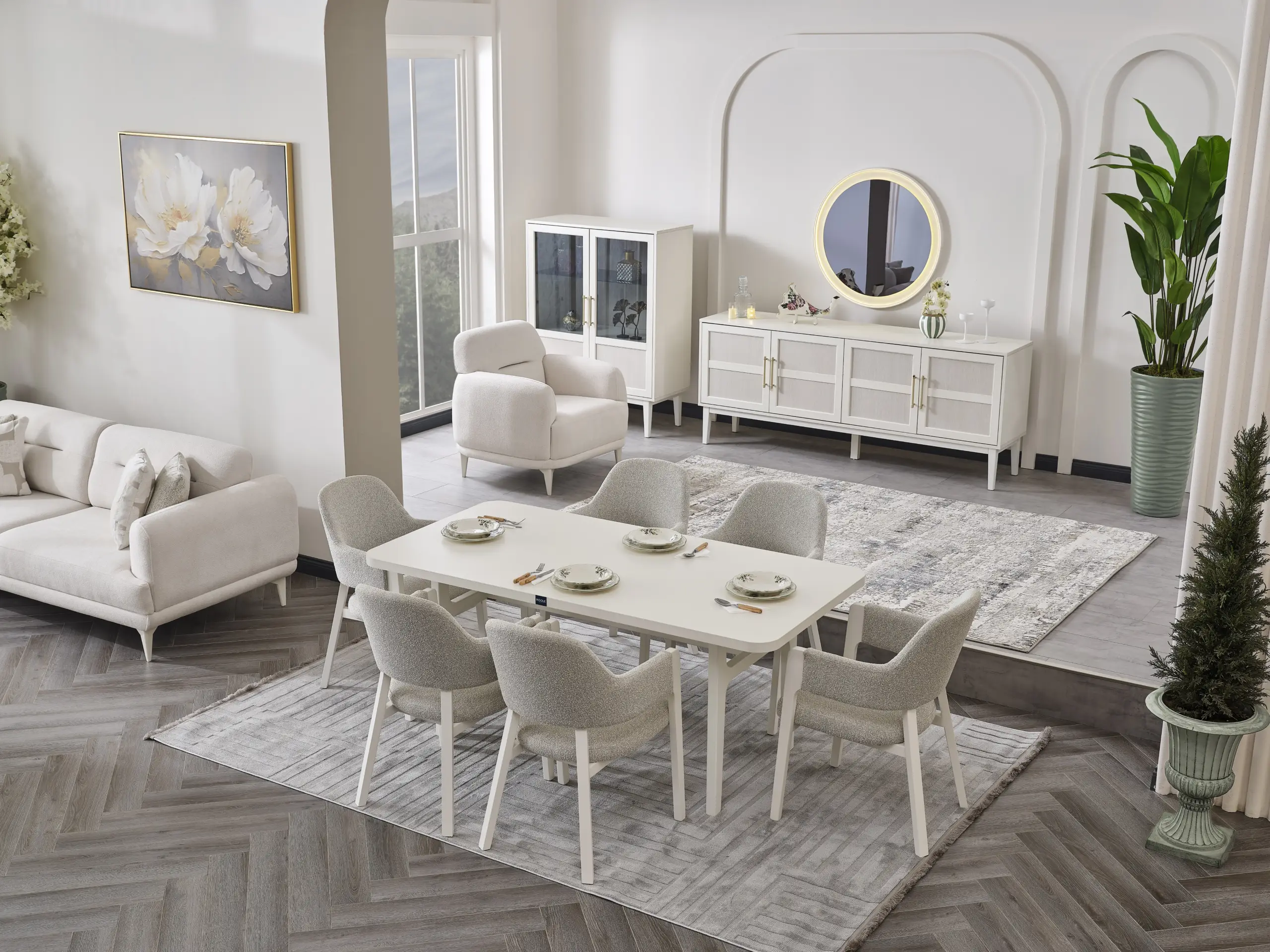 The Roma Dining Room Set brings a powerful character to your dining areas with its aesthetic design and elegant details. While providing long-lasting use thanks to its balanced lines and high-quality materials, it adds a prestigious atmosphere to your tables with its sophisticated appearance. It perfectly complements your living spaces with a design that adapts to both daily use and special occasions.