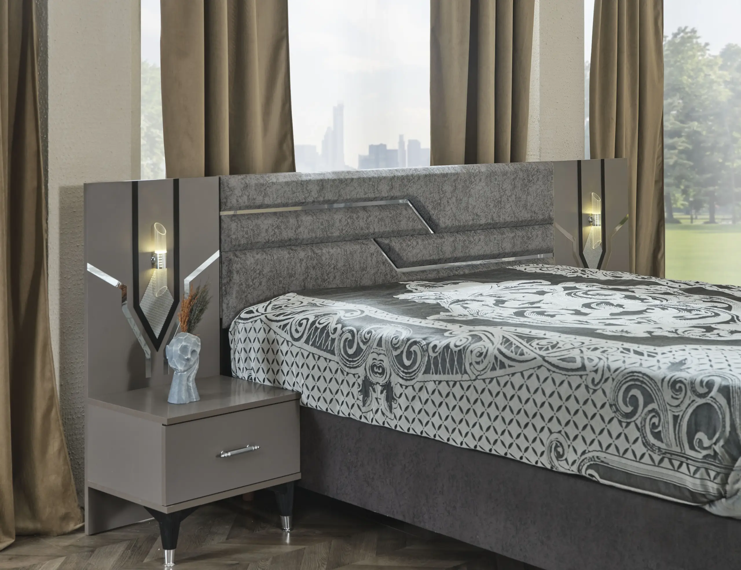 Sofa Yatak Odası Takımı, modern çizgileri ve yalın detaylarıyla yatak odanıza ferah bir görünüm kazandırır. Fonksiyonel dolap düzeni, rahat yatak başlığı ve tamamlayıcı parçalarıyla hem estetik hem de pratik bir kullanım sunar.