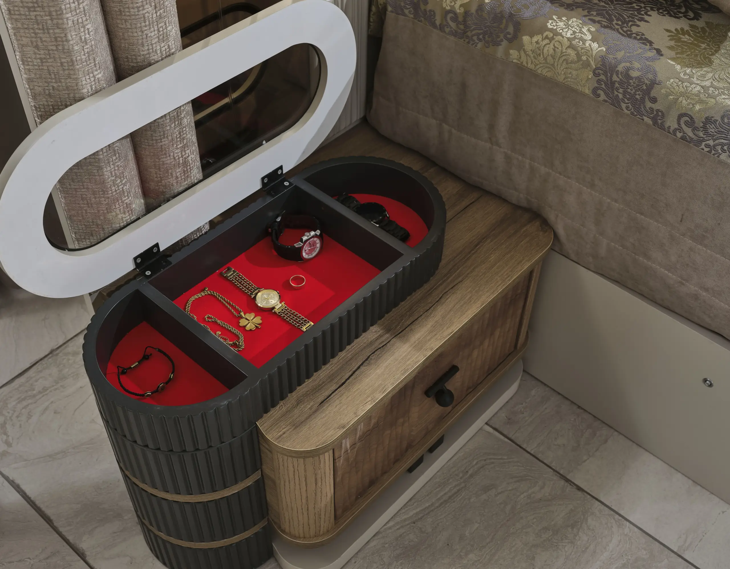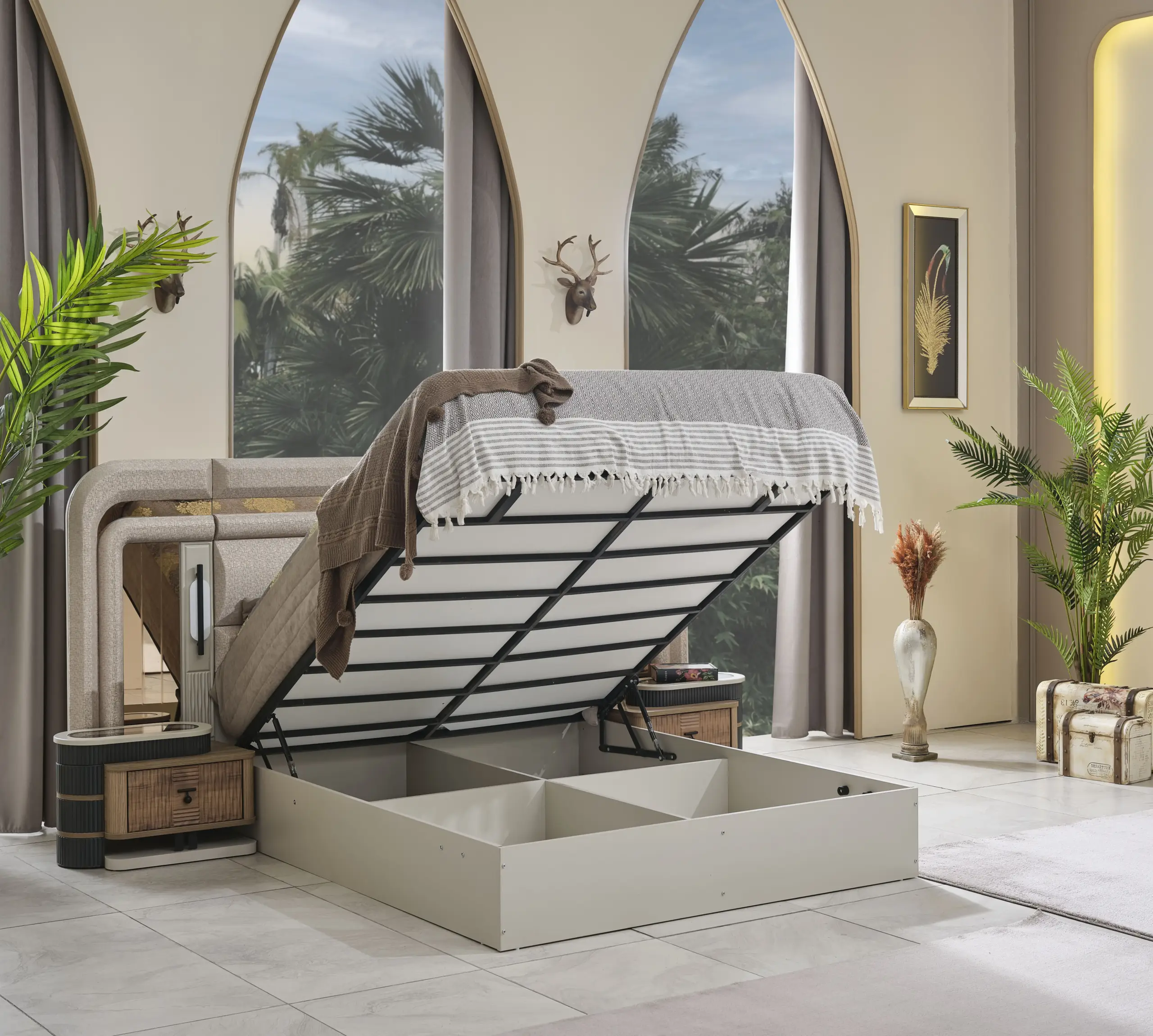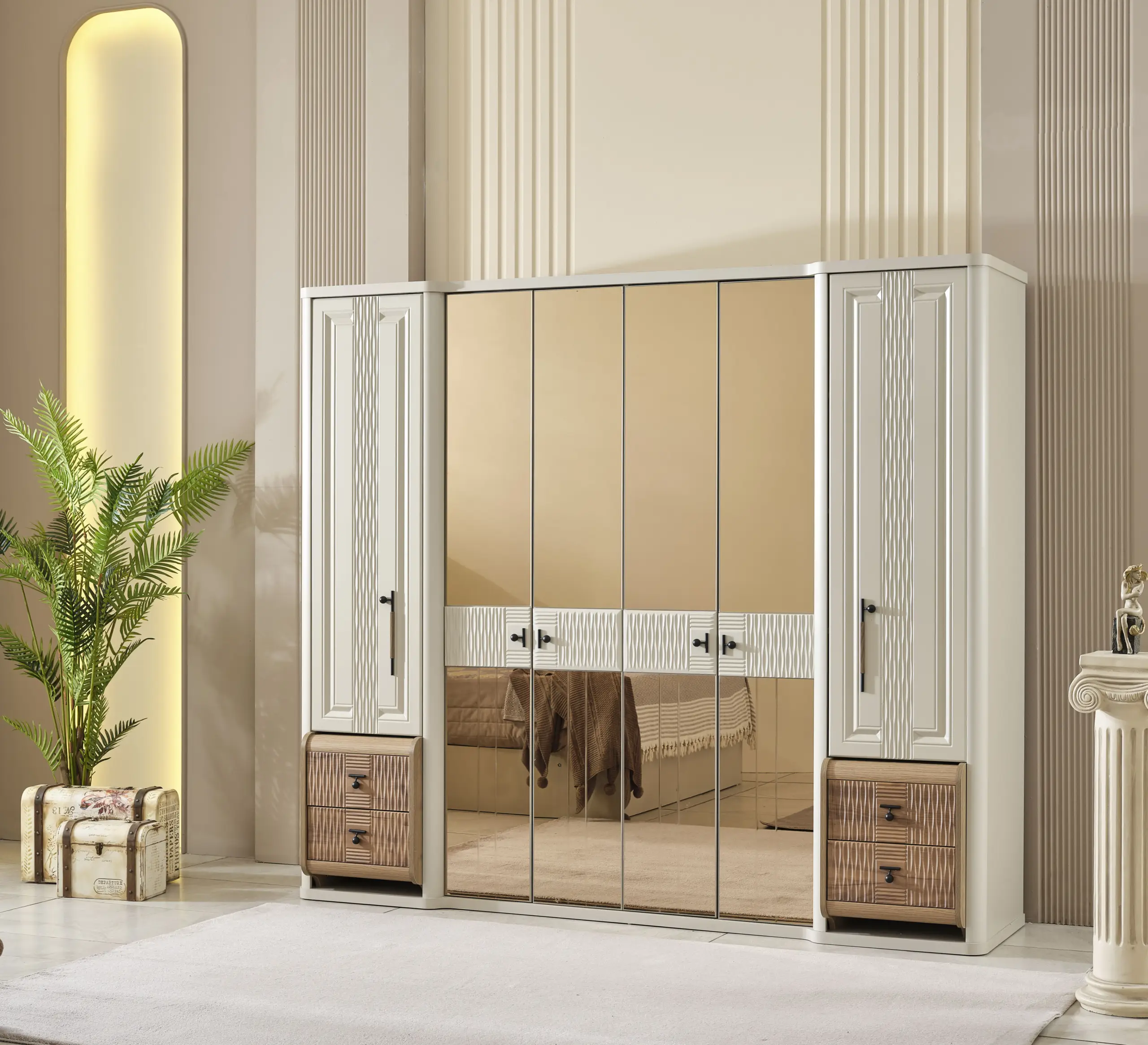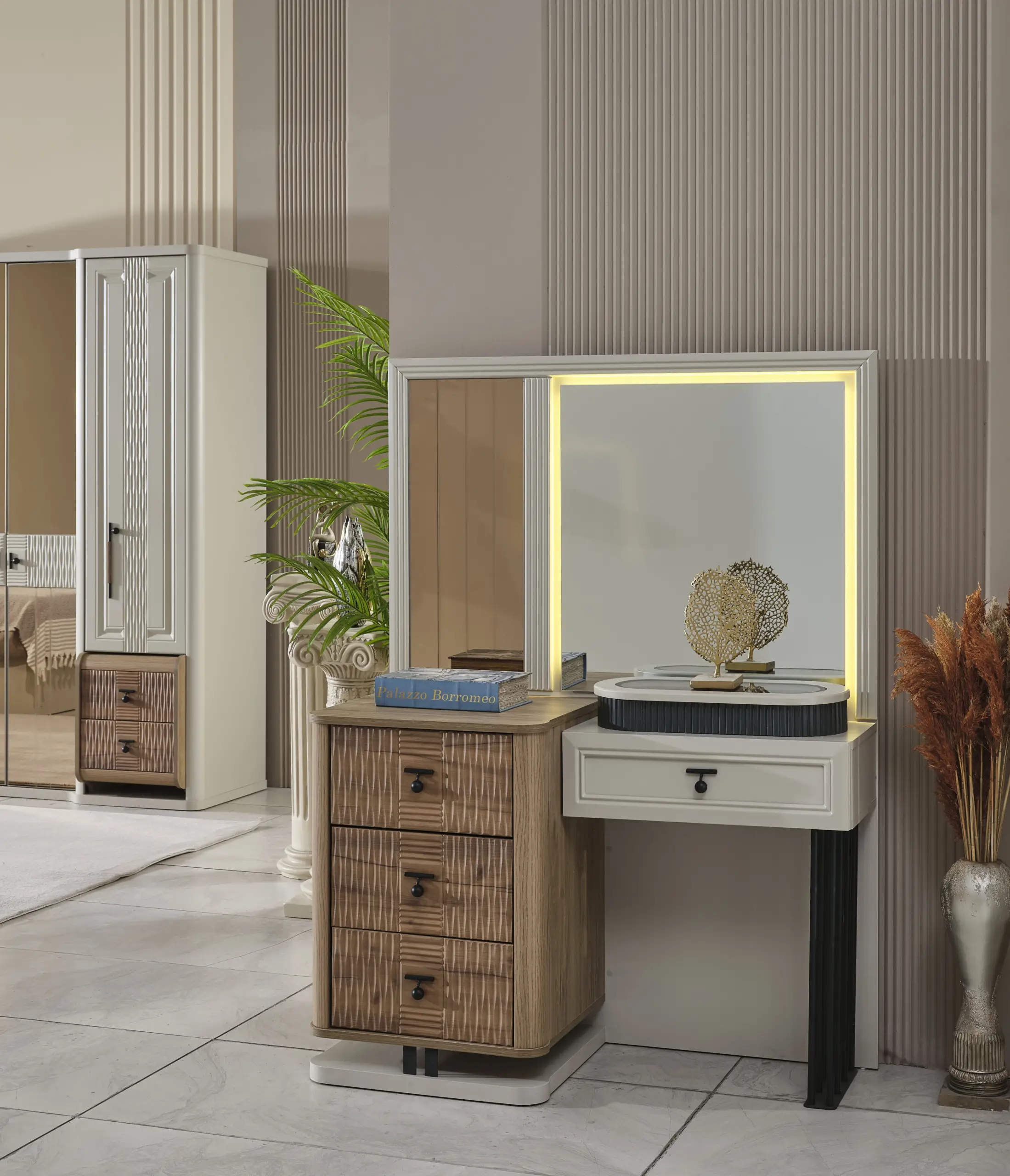 Üsküdar Yatak Odası Takımı, klasik detayları modern çizgilerle birleştirerek yatak odanıza sofistike bir atmosfer katar. Oymalı motifler, zarif yüzey detayları ve geniş depolama alanı sunan fonksiyonel tasarımıyla hem estetik hem de kullanışlı bir deneyim sağlar.